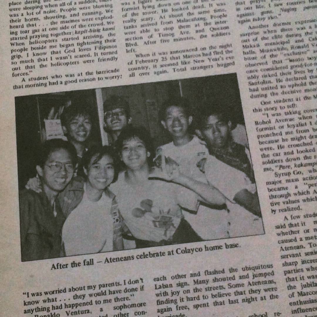 College opened up a whole new world for me. I was raised and educated as a proper Catholic girl, hearing Mass, praying the rosary, and generally staying out of trouble. I had more of the same in Ateneo, but with many more exciting elements thrown in.