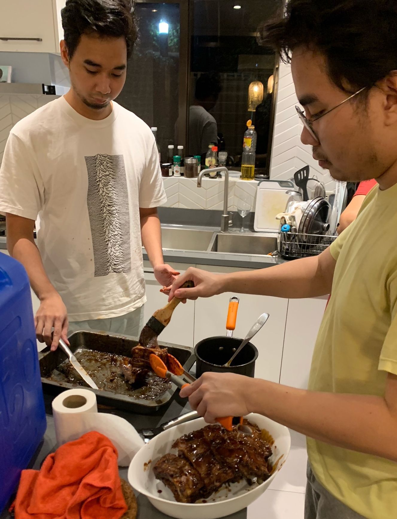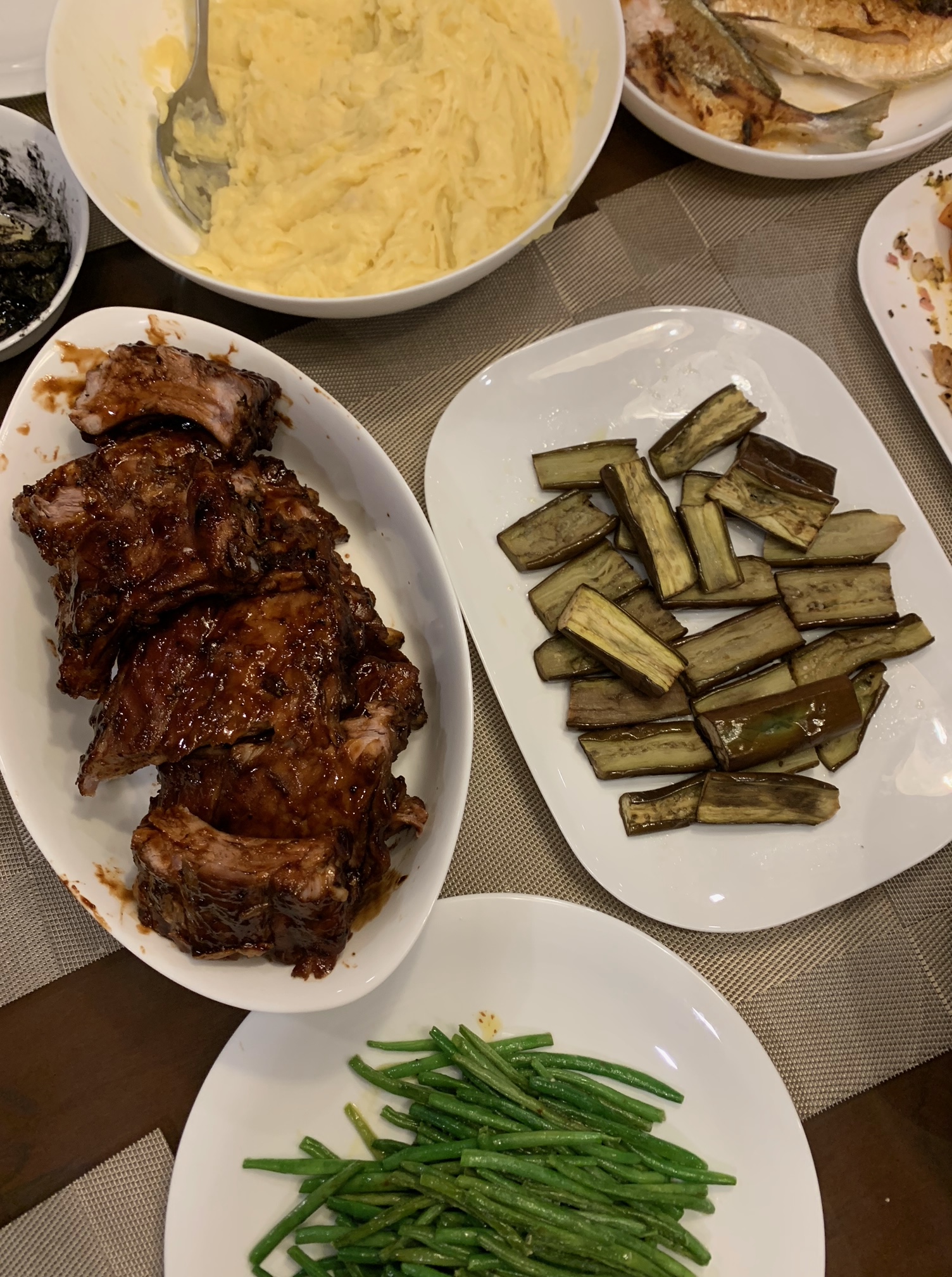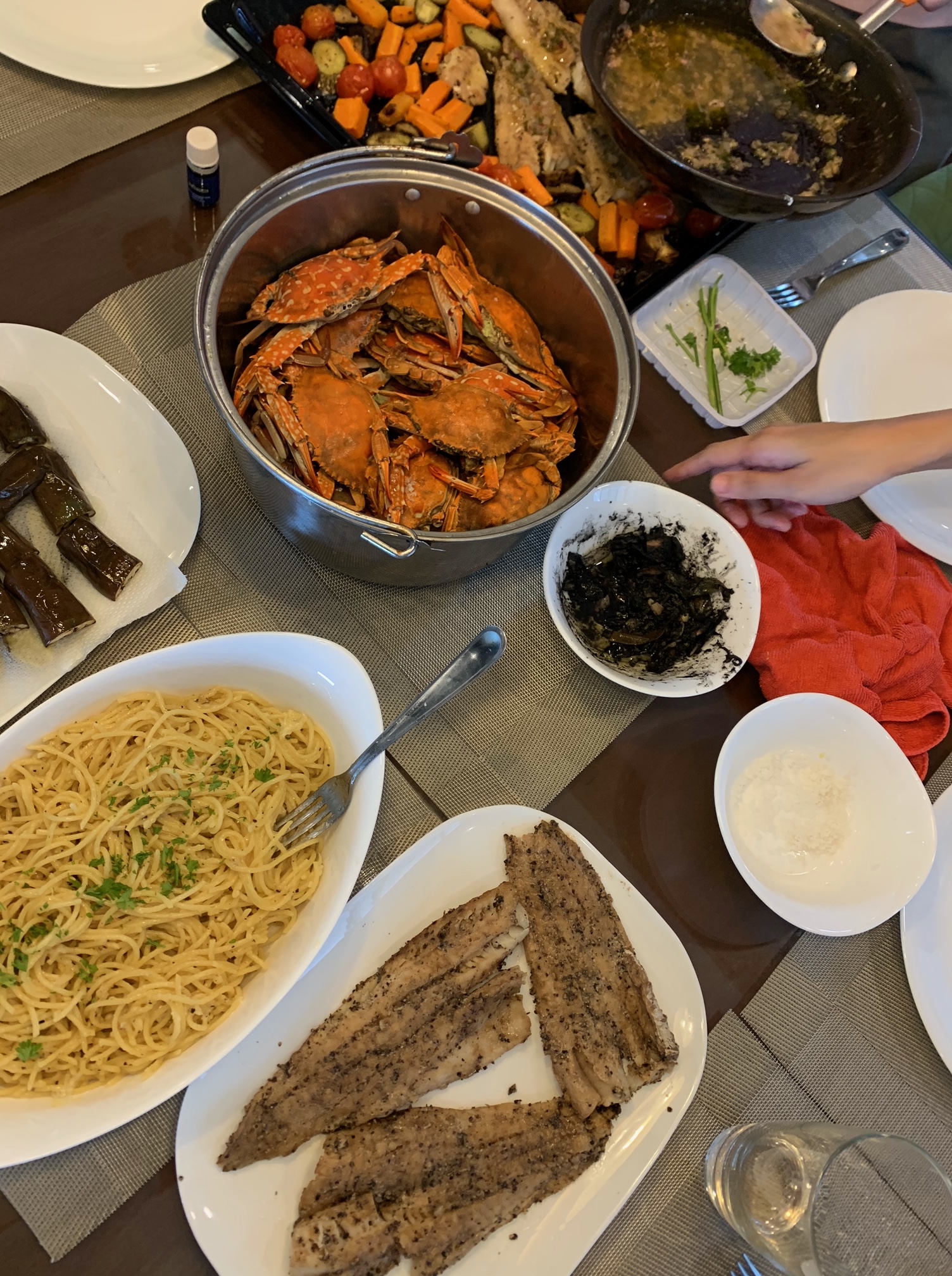 One of my favorites in this particular vacay: I didn’t have to cook! I asked the kids to be in charge of food, and they agreed. Our meals ended up being a showcase of their greatest hits. We had chicken barbeque, baby back ribs, mashed potatoes, pasta, fish, and seafood care of Mom. We had the best times at the dining room, which turned out to be the most used spot.