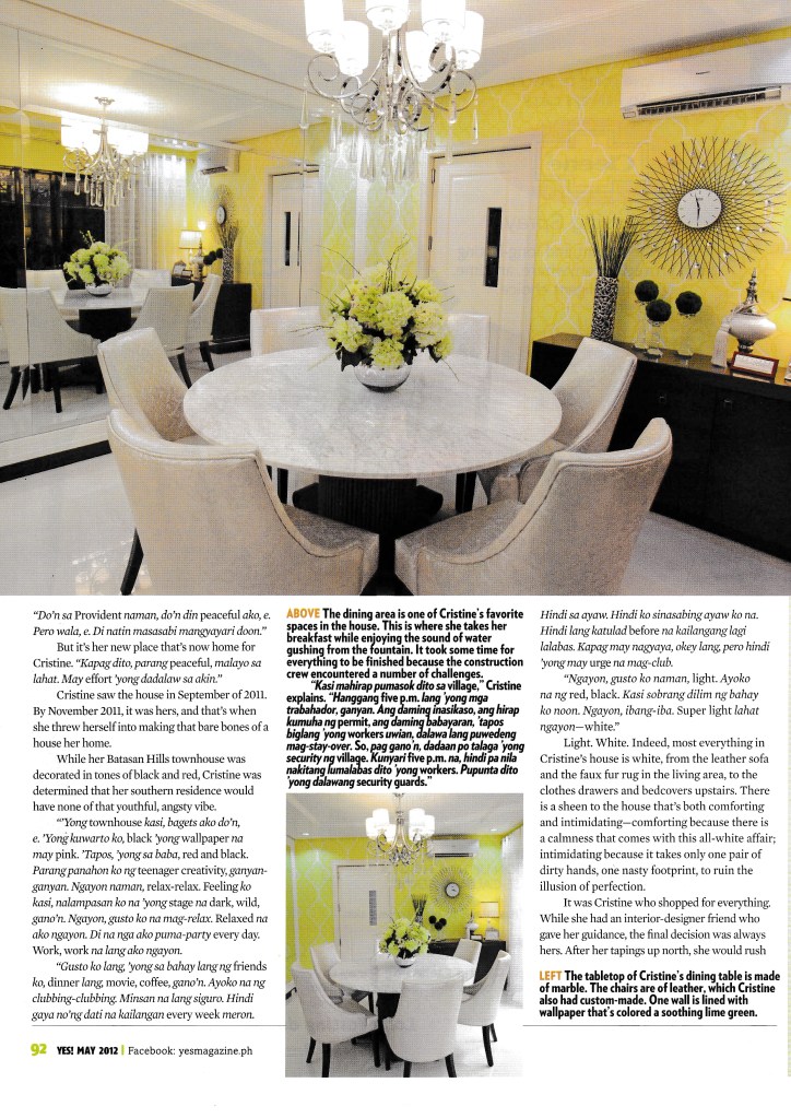 This was one hell of an interview. At the surface, it’s a feature of a celebrity home. Dig deeper, and you’ll see layer upon layer of the scintillatingly romantic life of a rising star. Ms. Jo-Ann Maglipon took the lead in this interview, and it was like taking a masterclass in celebrity journalism. I am forever grateful that I had the opportunity to work with her.